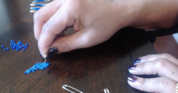 Det er jo morsomt for både store og små. Her viser vi deg hvordan du går frem! Du trenger: Sikkerhetsnåler Små perler Gummibånd. Slik gjør du: Begynn med å tre perler på en sikkerhetsnål.